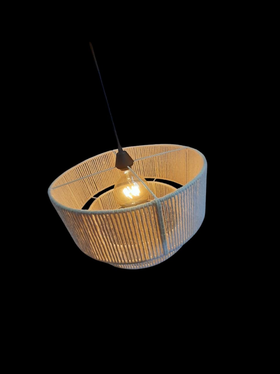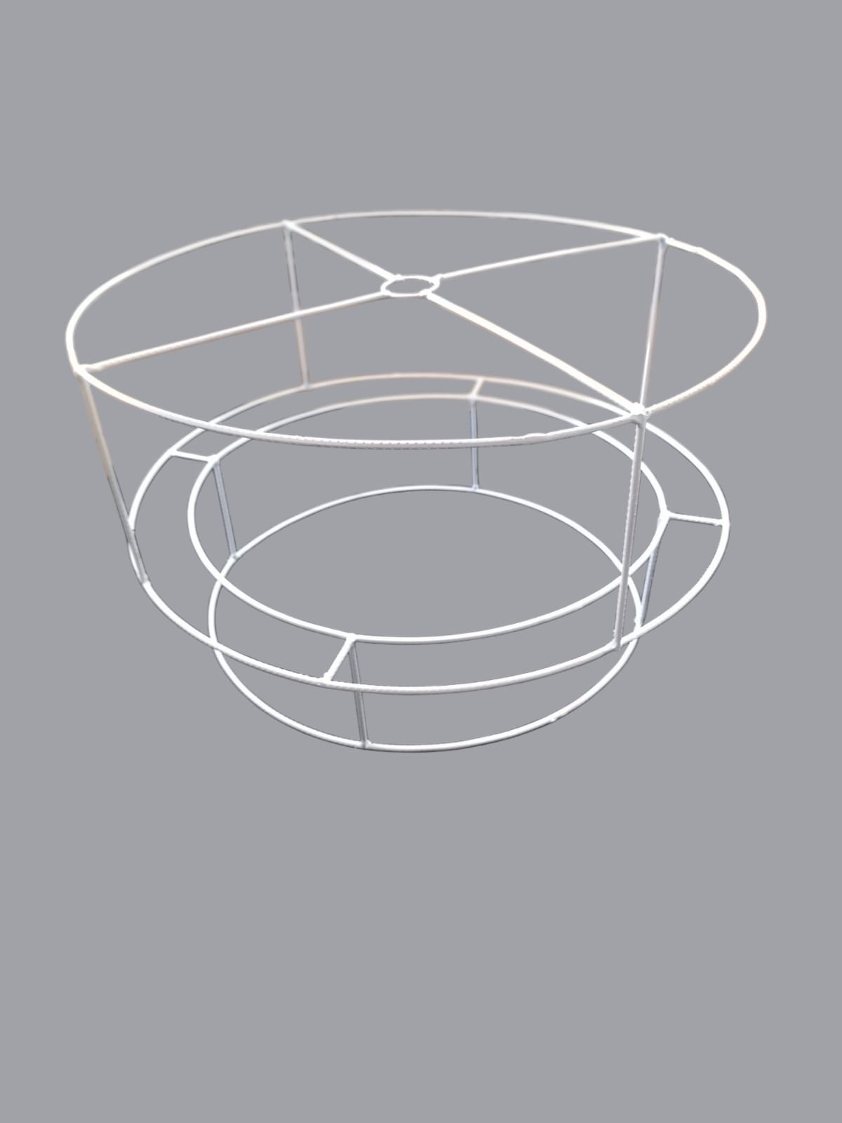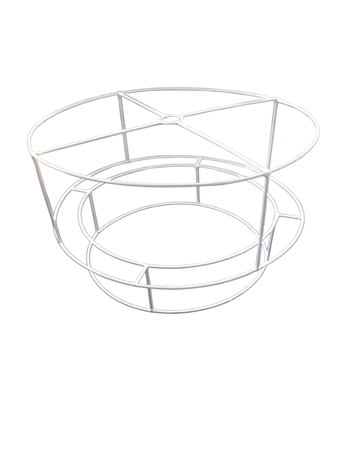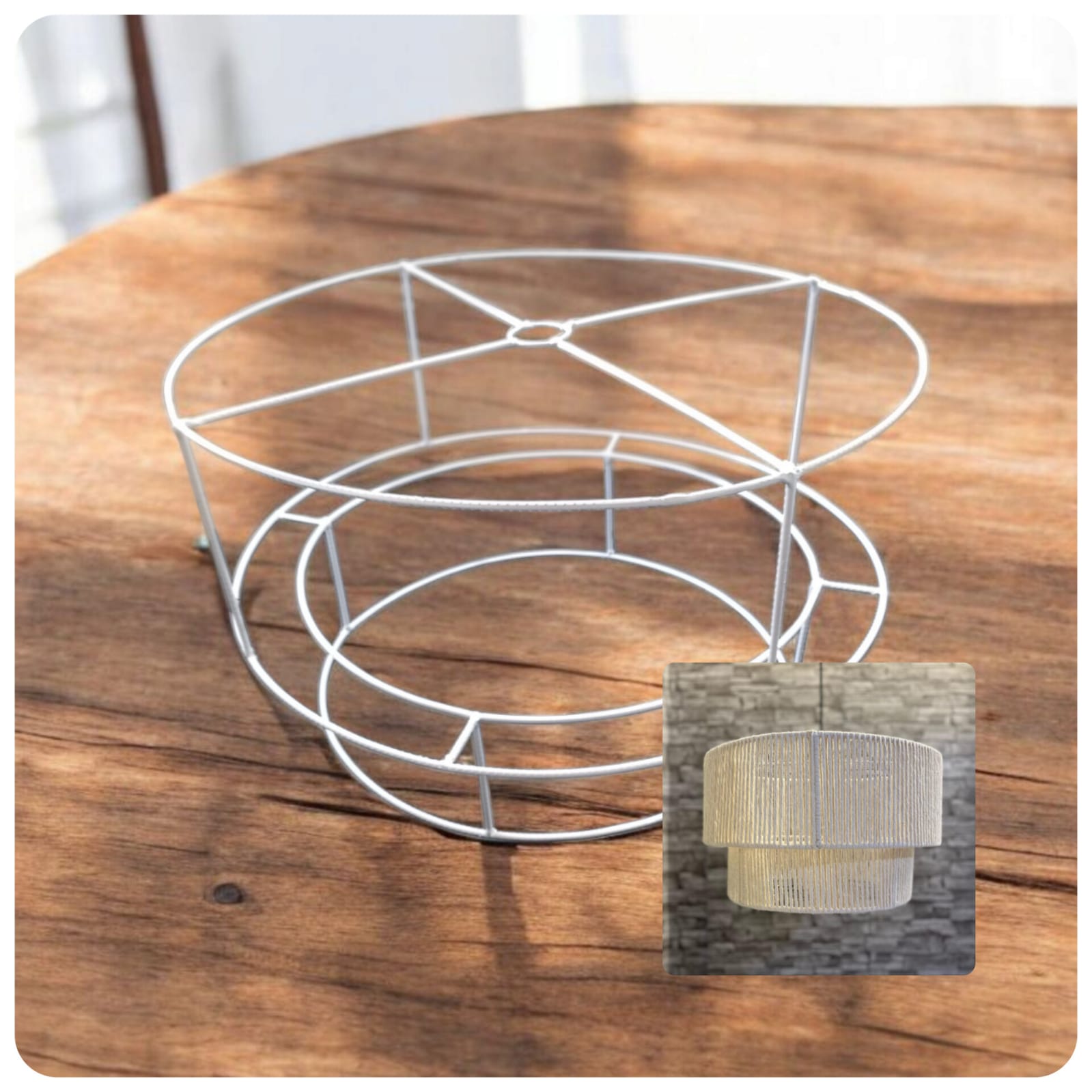 Aramado duplo redondo artesanal em ferro galvanizado, medindo 27A x 47cm, com acabamento em pintura automotiva de alta durabilidade. Projetado especificamente para a confecção de luminárias pendentes redondas de dois níveis, permite trabalhos com diversos materiais têxteis como barbante fusal, algodão ou juta. A estrutura robusta garante estabilidade e longevidade, enquanto o processo artesanal assegura precisão nas dimensões e acabamento profissional para suas criações luminotécnicas personalizadas.