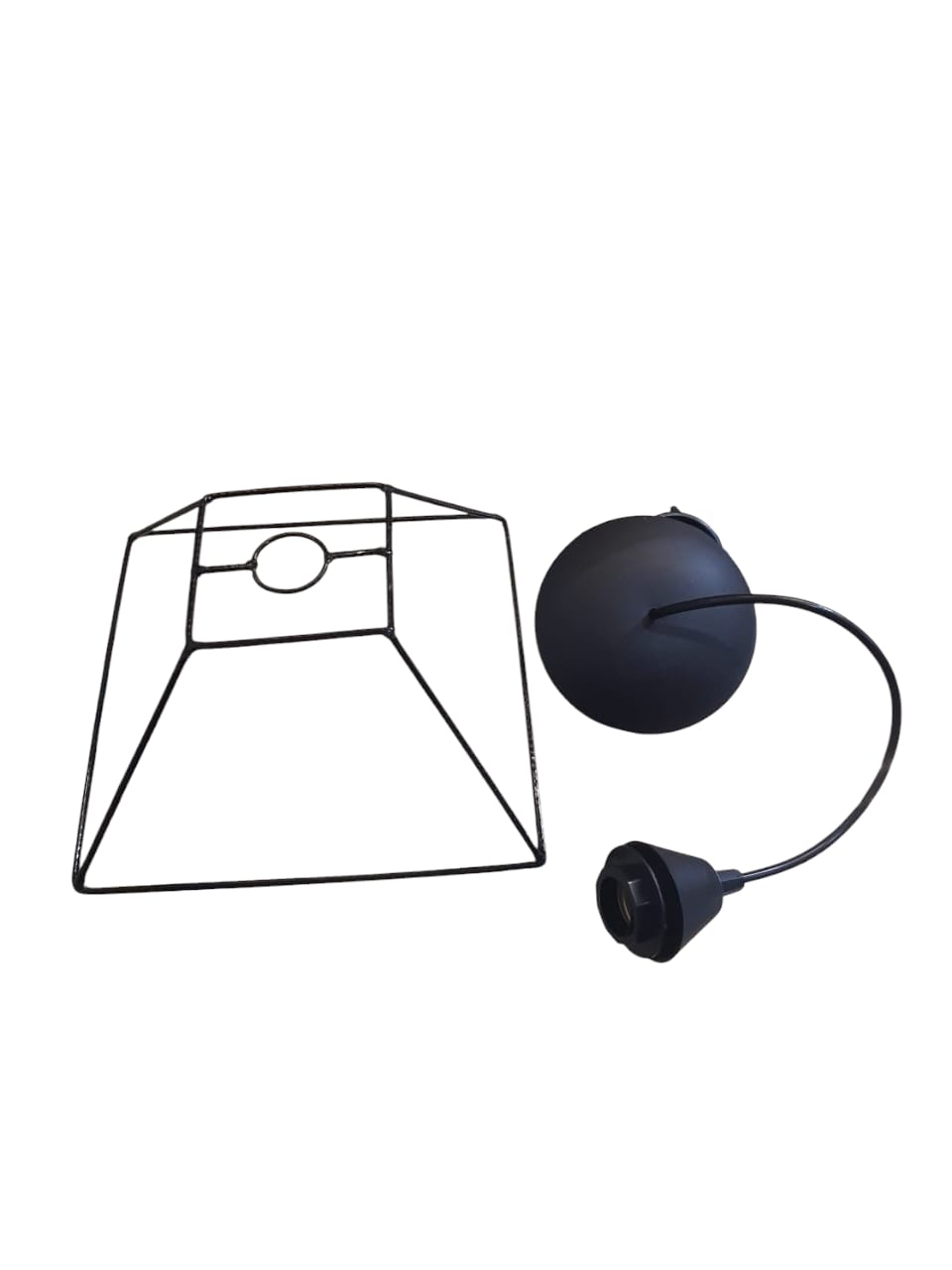 Aramado Triângulo artesanal em ferro, pintado com tinta automotiva de secagem rápida para durabilidade superior. Inclui rabicho completo de 1 metro para instalação imediata. Design demonstrado na aula inaugural da nossa comunidade no YouTube, permitindo criar pendentes personalizados com acabamento profissional.